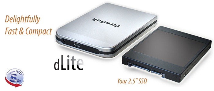 dLite Key AdvantagesThe FirmTek dLite silver aluminum USB 3.0 chassis for for 2.5-inch SSD and HDD weighs in at only 2.0 ounces without a drive. Add a 2.8 ounce SSD or a 4 ounce standard 2.5" rotational hard disk to create your very own ultra-light weight storage-on-the go package. It's small foot print of 4.78" x 2.96 x .5" fits just about anywhere! As computers become smaller and lighter the dLite offers an elegant, compact storage solution for Mac Pro, MacBook Pro, MacBook Air, Mac mini, iMac or Windows computers.