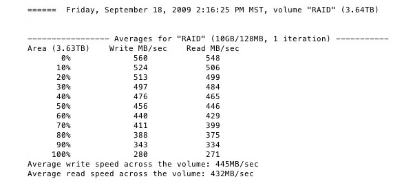 DiskTester 2.0 10GB results indicate the array is able to provide over