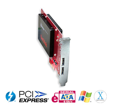 The unique SeriTek/6G2+2 design is aimed to meet the needs of customers who wish to be able to easily add an internal SSD to their computer. No cables to worry about - just mount the 2.5" SSD directly on the card and use the included screws to hold it firmly in place. Up to two SSD or HDD can be attached to the card, one on each side. The card provides the power and the ultra fast 6G SATA connections. With each port featuring bandwidth over 500MB/s, the Q6G offers a great option for adding a bootable 6G SSD to the Apple Mac Pro.