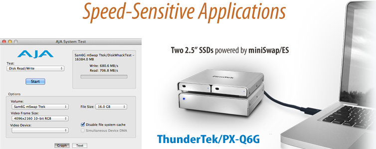 with the FirmTek ThunderTek/PX-Q6G and the 2012 Apple MacBook Pro running Mac OS X 10.8.4. Results may vary with different SSD, HDD and computer operating systems.